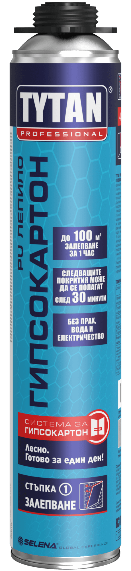 Еднокомпонентно полиуретаново лепило за монтаж на стенни плоскости от гипсокартон, гипсо- и циментофазер, циментови и дървесни плоскости (като OSB) към основи от бетон, газобетон, керамични тухли, силикатни блокчета, метал. Уникалната технология позволява прецизно и контролирано нанасяне и дава възможност за позициониране и корекция на плоскостта чрез леко притискане. Плътността на разтвора позволява изравняване на неравности по стената до 2 см.