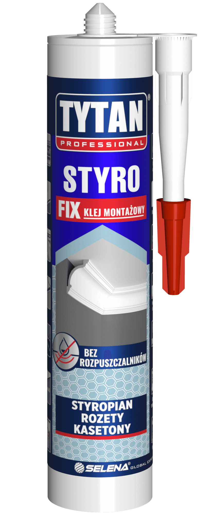 One-component mounting adhesive based on water dispersion intended for bonding elements made of polystyrene and polyurethane foam.