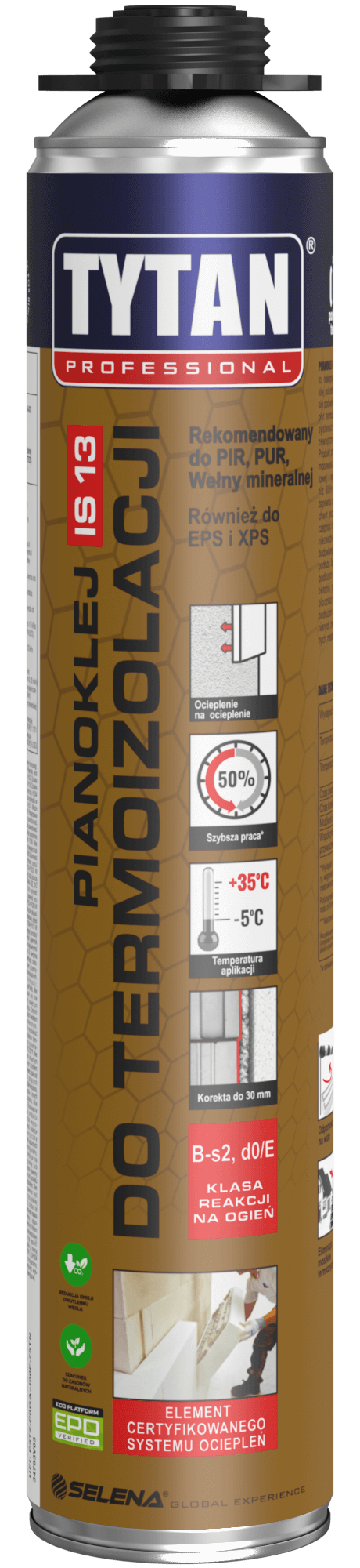 Low-pressure one-component polyurethane adhesive cured with a moisture. Intended for installation of thermal insulation boards in External Thermal Insulation Composite System (ETICS). The adhesive formula provides precise installation of thermal insulation, strong initial fast grab and a strong adhesion to all types of insulated surface. Suitable for white and graphite polistyren (EPS) boards, XPS, and PUR/PIR boards. Suitable for typical construction substrates.