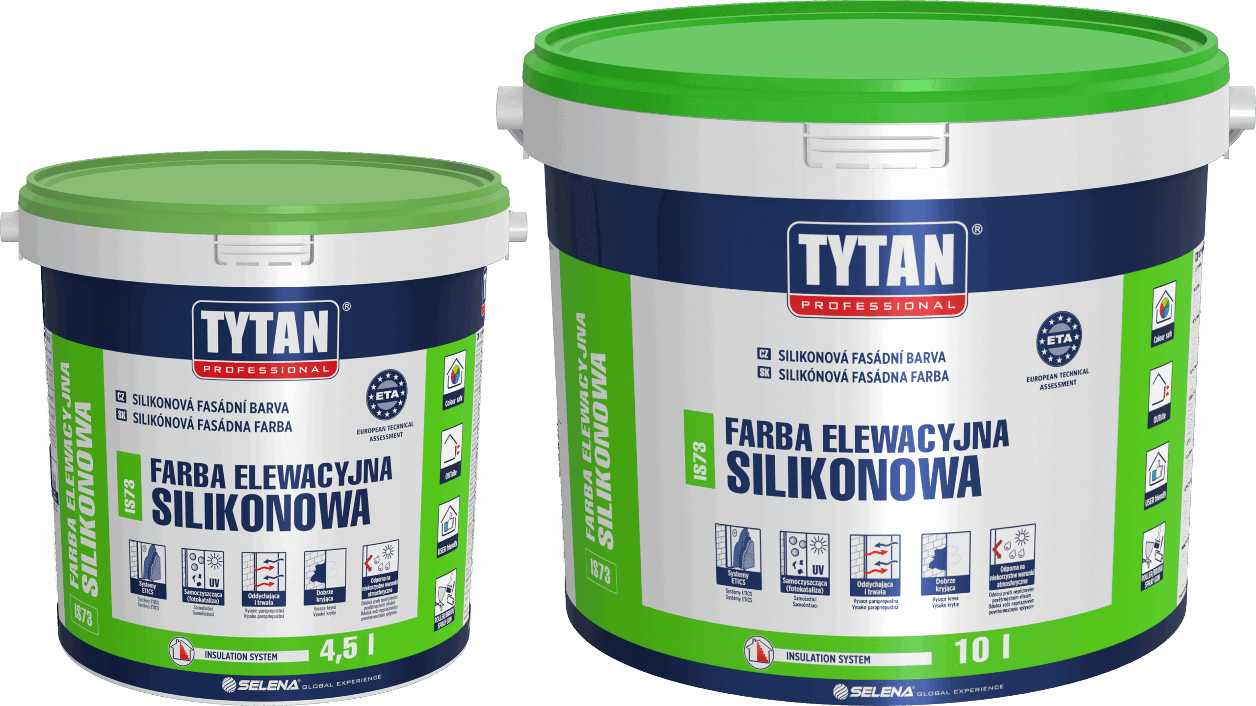 Facade silicone paint with the addition of silicone dispersion and high quality fillers as well as pigments. They cause photocatalysis effect supporting self-cleaning of the coat from deposited dirt. Paint features excellent covering-up properties. It has a high vapour permeability. It is resistant to weather conditions such as: rain, UV radiation, frost and wind. Topcoat is matt, smooth, without cracks, resistance to cleaning and scrubbing. The paint is available in a wide range of colours as listed in TYTAN PROFESSIONAL Colour Collection 300 and in other colours at customer’s request.