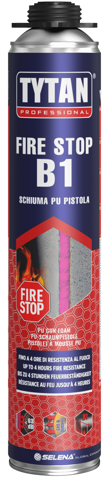 Technologically advanced high quality polyurethane gun foam formulated for building and construction applications in places where fire resistance and self-extinguishing of materials are required – fire resistant for up to 4 hours. Classified as slow combustible and fire retardant. B1 PU GUN Foam seals against smoke, is self-extinguishing and does not create dripping balls of fire. Product does not emit MDI during application and possesses M1 emission class for building materials – once cured, the product does not emit any hazardous substances.