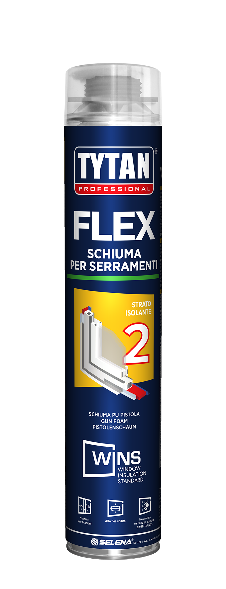 TYTAN WINS Flex is a highly flexible insulating polyurethane foam with low post-expansion and excellent structure which is part of the 3-layer window sealing and insulation system TYTAN WINS Flex (zone 2). Orange coloured. It is a perfect solution for sealing and insulating the space between jambs and window and door frames made of wood, metal or PVC. Prevents deformation of windows of any sizes. In the TYTAN WINS Flex system, it fills layer 2, i.e. the insulation zone, and primarily takes over the insulation role in the entire TYTAN WINS Flex system.