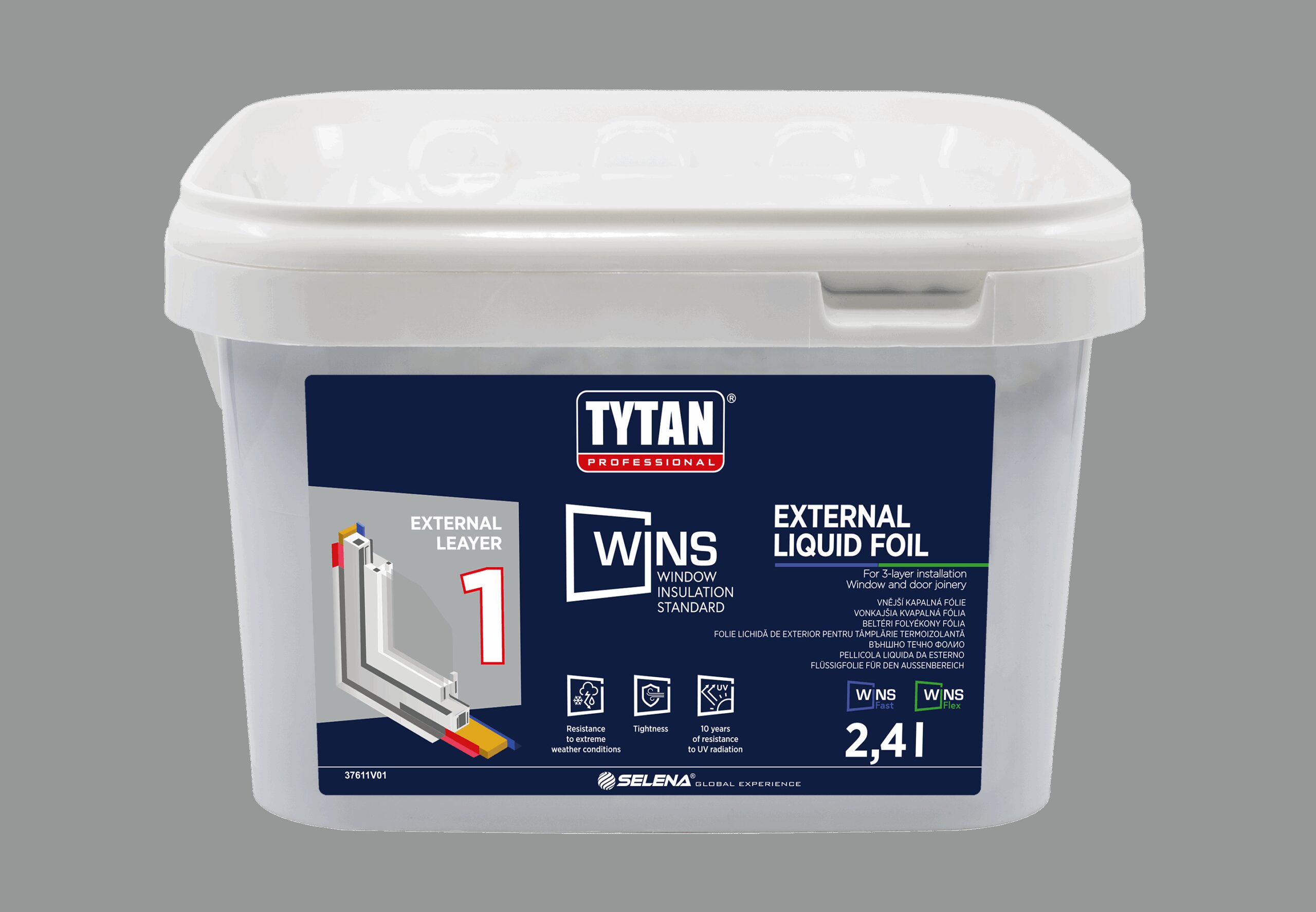 TYTAN WINS exterior liquid window foil is a ready to use one-component product, forming a vapor-permeable coating (zone 1), which regulates the migration of moisture from the window gap to the external environment of the building, which eliminates the degradation of the foam (zone 2). It is chemically neutral and adheres to most building materials. It creates a flexible and vapor-permeable coating. Thanks to its flexibility, it is ideal for sealing joints between frames and jambs in TYTAN WINS systems, where small displacements usually occur. The coating in combination with the TYTAN WINS Flex insulating foam and the TYTAN WINS internal liquid foil creates a water and wind resistant connection between the reveal and the door frame, preventing energy loss and the possibility of moisture and fungus in the joint. The joint sealed with TYTAN WINS liquid foil is resistant to adverse weather conditions, including hurricanes up to 160 km/h. TYTAN WINS specialist liquid film for sealing windows is reinforced with polymer fibers and has a very high resistance to UV radiation for 10 years.