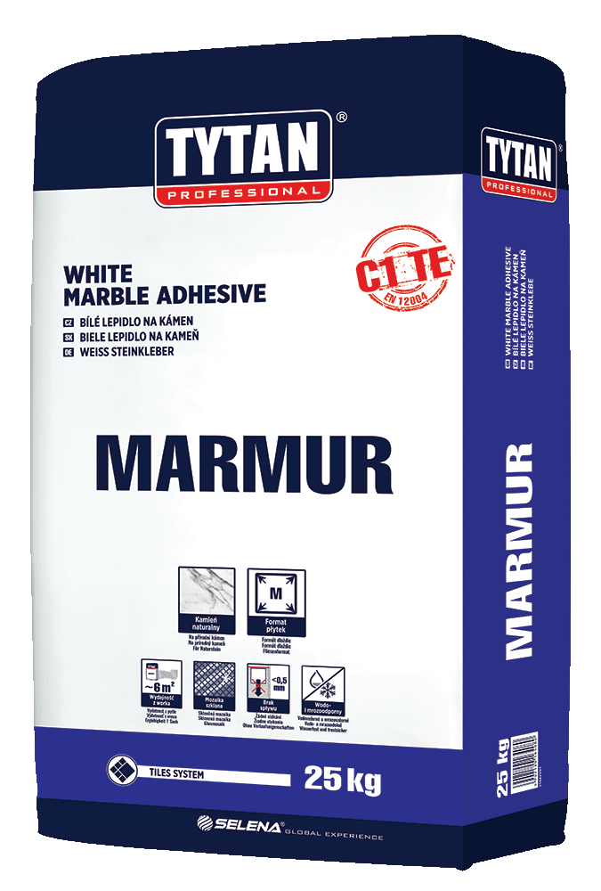 MARMUR adhesive in class C1TE is intended for fixing natural and synthetic marble, natural stone, glass mosaics, wall and floor ceramic tiles (glazed, terracotta, clinker, and gres), terazzo and cement tiles.