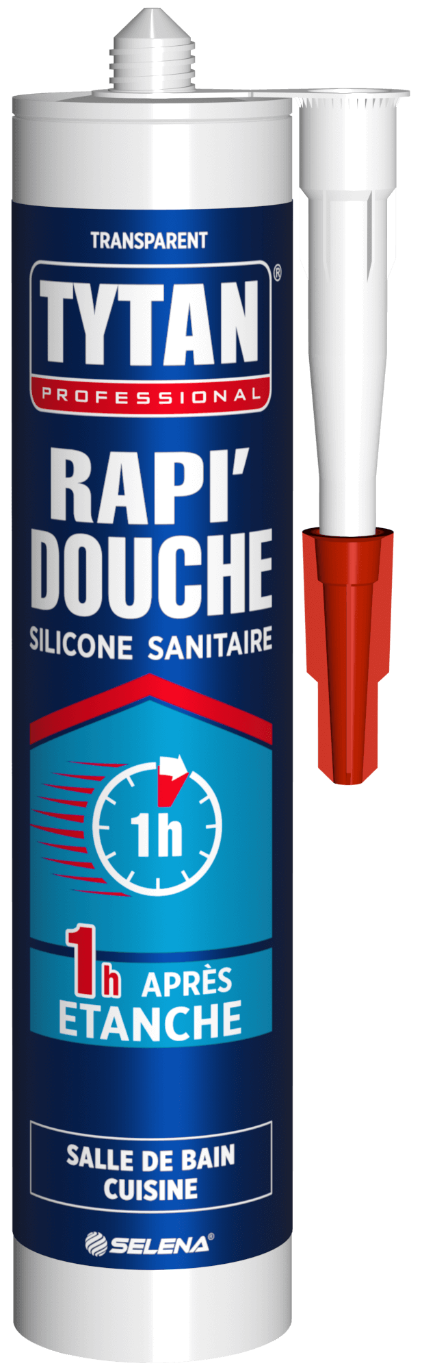 Mastic à base de caoutchouc silicone acide avec fongicides anti-moisissures pour salles de bains et cuisines.