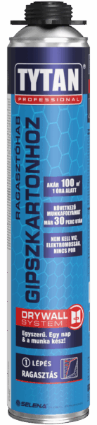 Professzionális egykomponensű poliuretán gipszkarton ragasztó, szálcement, cement és fa alapú táblák (OSB) rögzítésére normál betonból, pórus betonból, kerámia téglából, szilikát tömbökből, fa alapú táblákból készült felületekhez. Az egyedülálló technológia lehetővé teszi a precíz és ellenőrzött alkalmazást – lehetővé teszi a tábla pozícionálását és helyzetének korrigálását azáltal, hogy kiegyenlíti azokat a felületeket, amelyek egyenetlensége legfeljebb 20 mm. A gipszkarton ragasztóhabbal való munka lehetővé teszi akár 100 m² gipszkarton felhelyezését 1 óra alatt.