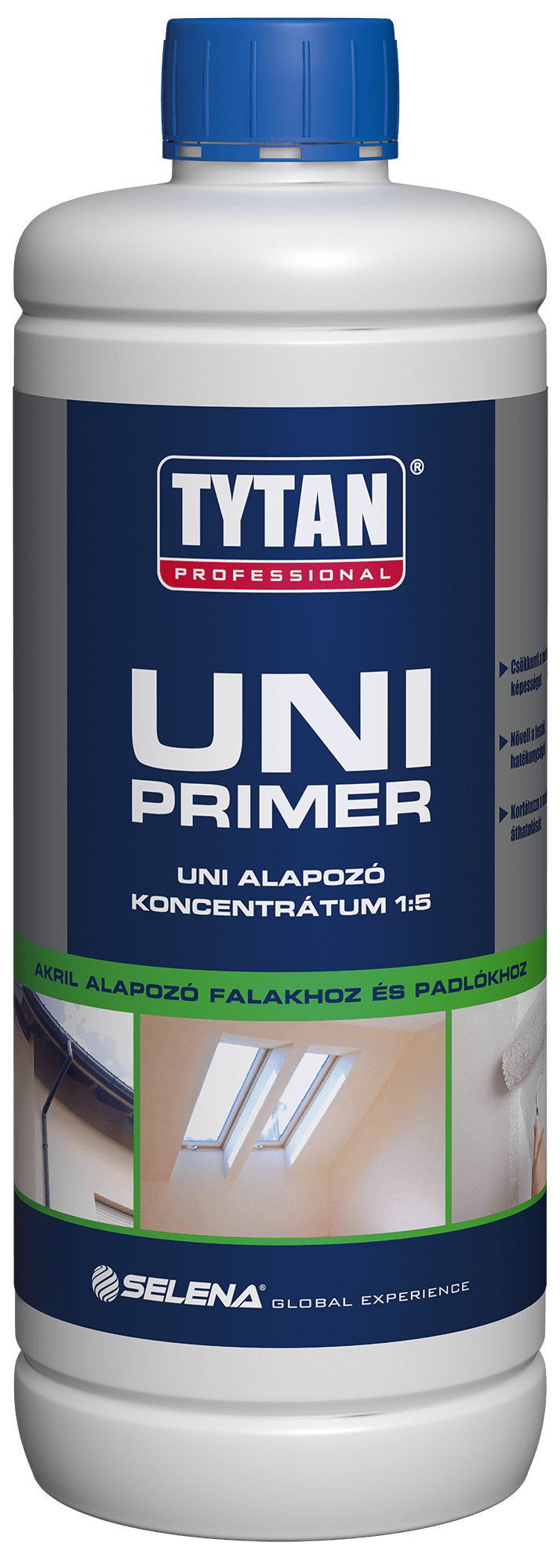 A Tytan Professional UNI Primer egy Akril alapozó cement esztrichez, betonhoz, falakhoz és padlókhoz 1:5 arányban koncentrálva – nagy teljesítmény legfeljebb 80 m² / 1 liter-ig.