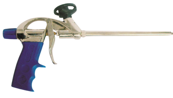 Professzionális poliuretánhab pisztoly, amely pontos és tiszta felhordást tesz lehetővé a szerelés során.