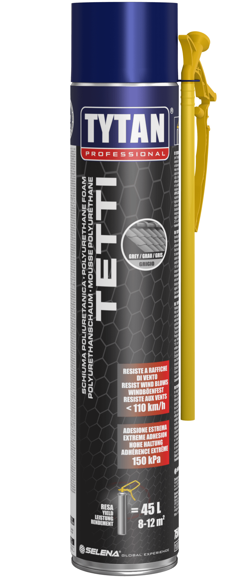 Tytan Professional Schiuma Tetti B3 è una schiuma poliuretanica di alta qualità, indicata per tutte le applicazioni di montaggio e sigillatura delle coperture in coppi o tegole. Disponibile nei formati manuale e pistola, ha una bassa post espansione ed un’alta resistenza alle raffiche di vento. Si può utilizzare per fissare in copertura teli freno e barriera al vapore.