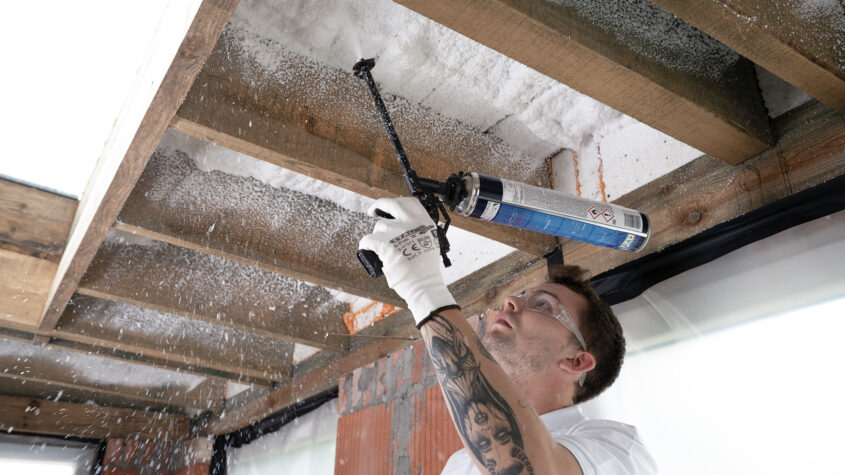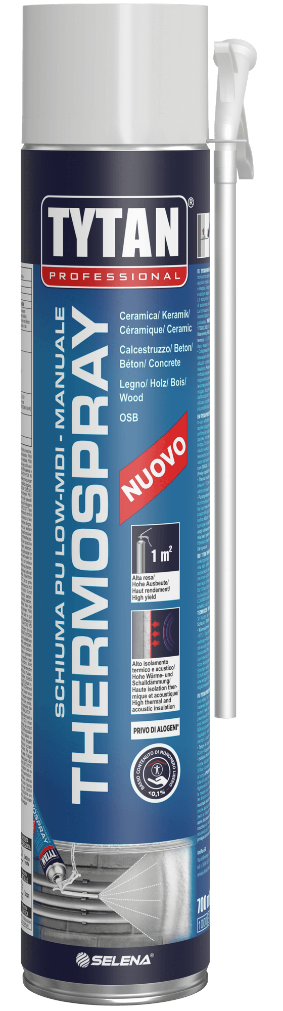 Schiuma Poliuretanica Thermospray è una moderna schiuma monocomponente a basso contenuto di isocianati. Progettata per spazi difficili da raggiungere e irregolari.