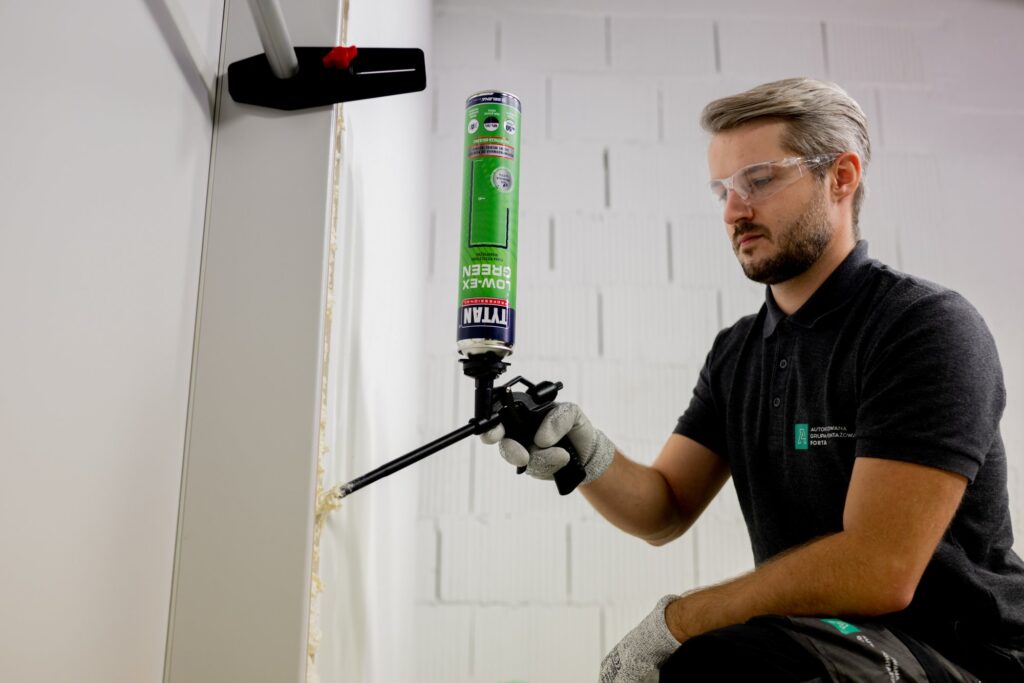 Po mechanicznym zamocowaniu drzwi pozostaje szczelina między murem a ościeżnicą, którą należy wypełnić rozprężną pianą poliuretanową. To jeden z kluczowych momentów całego procesu montażu, przy którym najłatwiej popełnić błędy. Spowodowane są one złym doborem piany, a także nieumiejętną jej aplikacją. Radzimy zatem, by unikać pian najtańszych, o dużym przyroście objętości. Gwałtownie one nabrzmiewają, rozpychając otwór, a tym samym deformując ościeżnicę. Po takim zdarzeniu praktycznie nie ma szans na prawidłowe funkcjonowanie skrzydła, a co za tym idzie montaż drzwi, które spełnią swoja rolę jako element wykończenia wnętrz i przegroda między pomieszczeniami. Dlatego niezmiernie ważnym jest, by właściwie dobrać pianę montażową i zwrócić uwagę, by była ona niskoprężna. Ma ona niski przyrost wtórny czyli znikomą postekspansję, a zatem nie spowoduje wypaczenia ościeżnic. Obecnie coraz częściej inwestorzy zwracają także uwagę na aspekty chroniące środowisko naturalne, czyli na skład danego produktu. Dlatego warto zainwestować w pianę, która spełni powyższe warunki. Taką jest Tytan Professional LOW-EX GREEN piana pistoletowa niskoprężna. To innowacyjny produkt, opracowany w Centrum R&D Seleny, którego unikalna receptura oparta jest częściowo o surowce pochodzące ze źródeł w 100% odnawialnych. Piana wyróżnia się również wysoką wydajnością (do 50 l z puszki) oraz izolacyjnością akustyczną do 63 dB, a przede wszystkim bardzo niską postekspansją. Istotne ograniczenie przyrostu wtórnego zabezpiecza ościeżnice drzwi przed deformacją, czyli zmorą monterów: wypaczeniami i wybrzuszeniami.