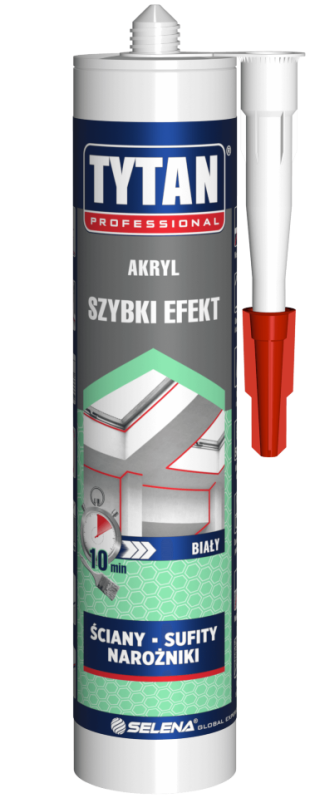 Akryl SZYBKI EFEKT to elastyczny i uniwersalny uszczelniacz budowlany, przeznaczony do wypełniania pęknięć, rys i szczelin w ścianach i sufitach. Dzięki zastosowaniu innowacyjnej receptury Akryl SZYBKI EFEKT może być malowany już po 10 minutach od aplikacji.