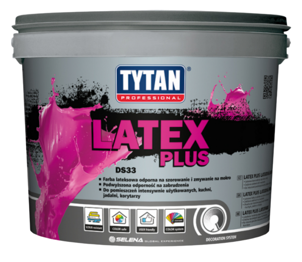 Lateksowa farba wewnętrzna na bazie dyspersji akrylowej o dobrych właściwościach kryjących bez smug i spękań, odporna na zmywanie i szorowanie na mokro.