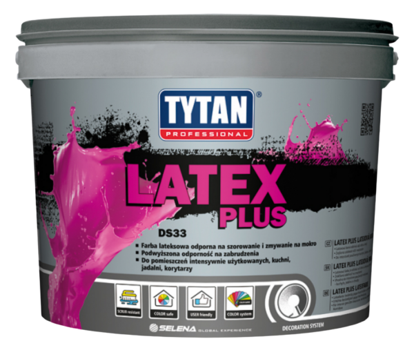 Lateksowa farba wewnętrzna na bazie dyspersji akrylowej o dobrych właściwościach kryjących bez smug i spękań, odporna na zmywanie i szorowanie na mokro.