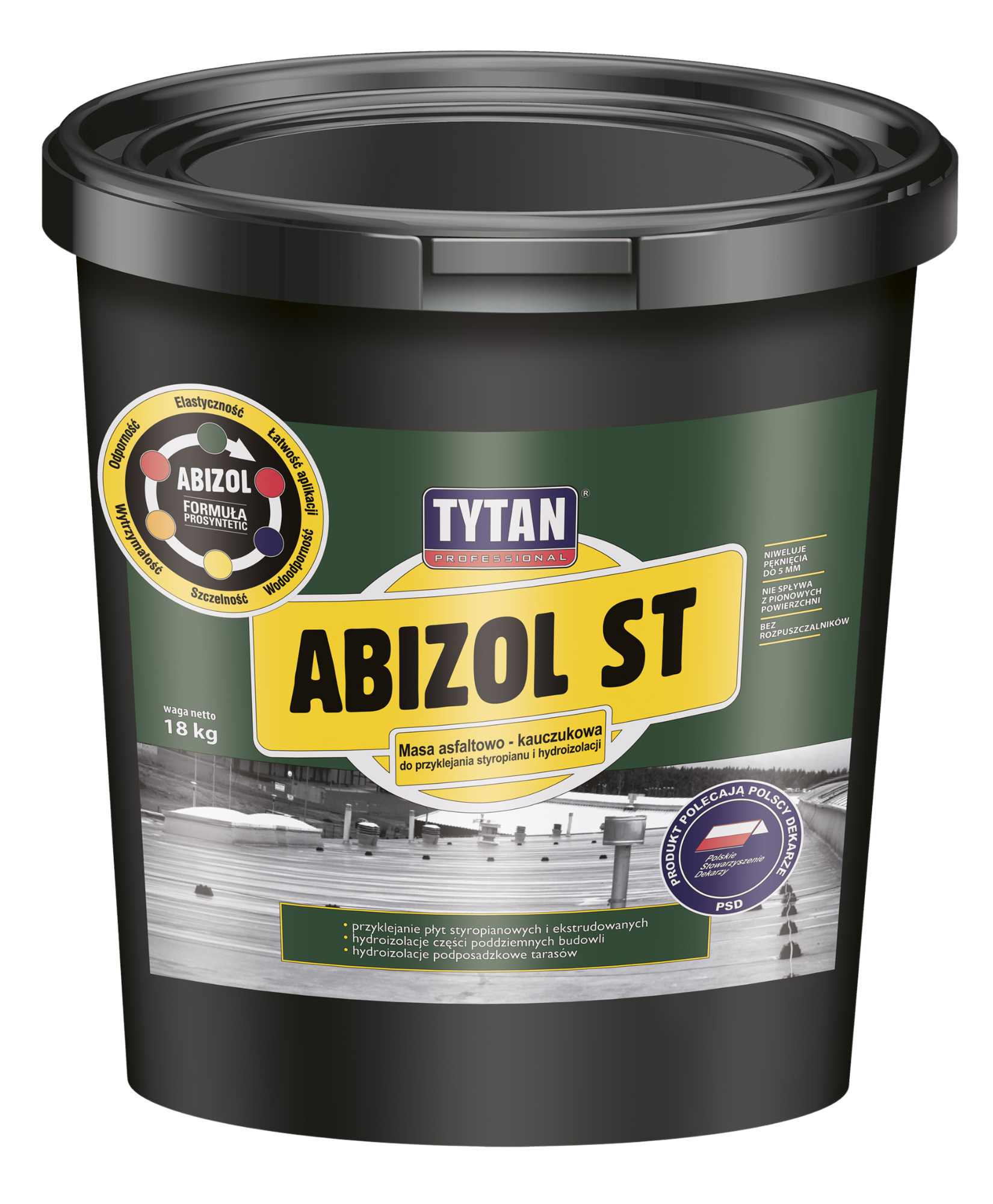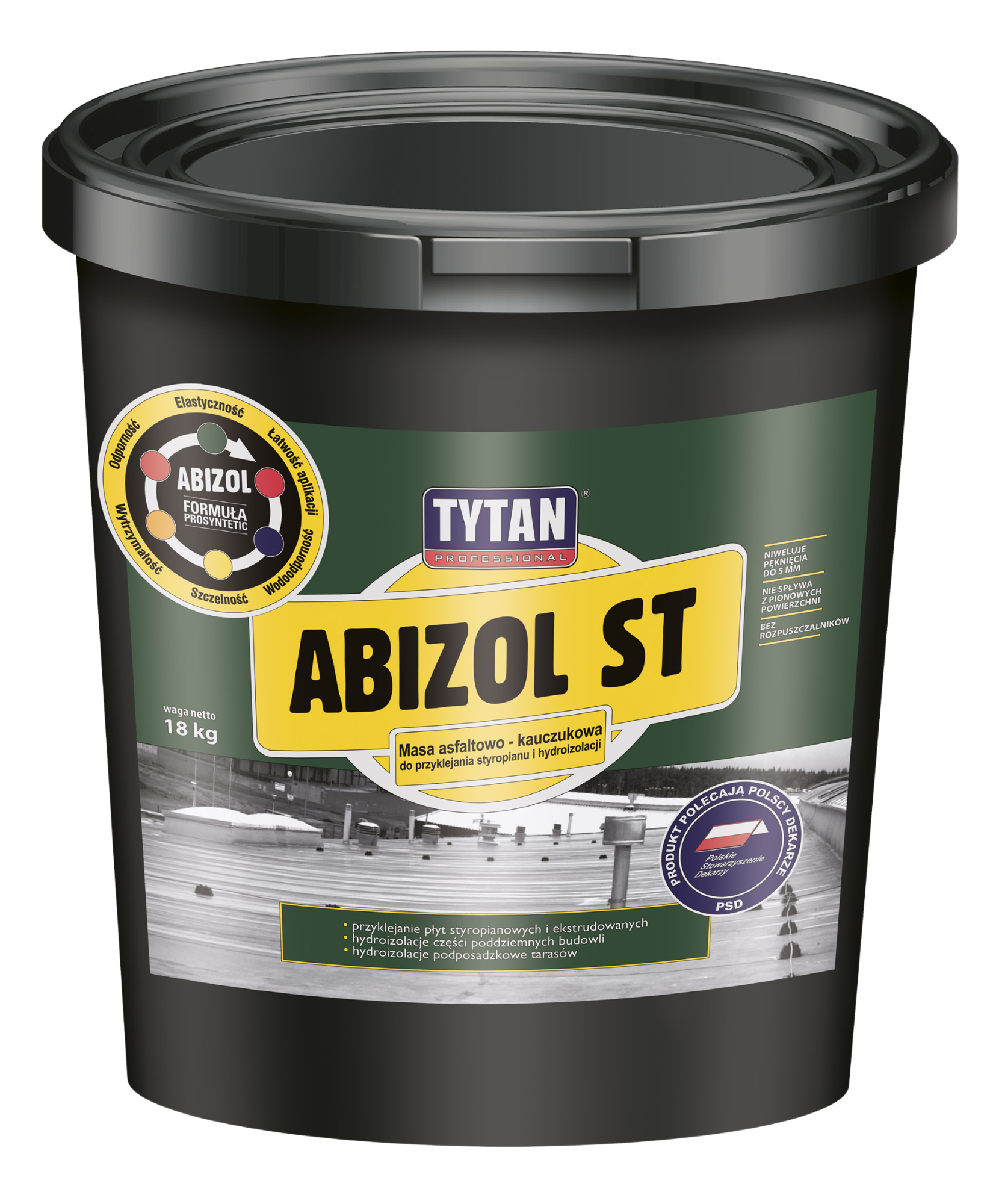 Dyspersyjny lepik asfaltowy, modyfikowany kauczukiem syntetycznym. Przeznaczony do klejenia płyt styropianowych (EPS i XPS) do zagruntowanych podłoży na fundamentach oraz do wykonywania grubowarstwowych, bezspoinowych powłok przeciwwodnych typu lekkiego, średniego oraz ciężkiego na powierzchniach betonowych (pionowych i poziomych) zlokalizowanych poniżej gruntu. Wysoka zawartość dyspersji kauczuków oraz dodatków uszlachetniających zapewnia trwałe połączenie styropianu do fundamentów, a w przypadku wykonywania hydroizolacji tworzy powłoki odporne na mróz i zmiany temperatur. Powstałe powłoki są zwarte, elastoplastyczne i niwelują pęknięcia podłoża aż do 5 mm.
