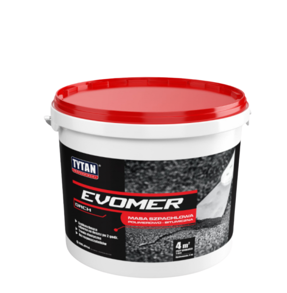 Gęsta masa polimerowo-bitumiczna przeznaczona do szpachlowania asfaltowych pokryć dachowych. Wypełnia pęknięcia i ubytki i tworzy zwarte, ale trwałe elastoplastyczne warstwy. Ze względu na dobre właściwości klejące może być używana do podklejania płyt termoizolacyjnych. Masa szpachlowa nadaje się również do wykonywania grubowarstwowych, bezspoinowych, powłokowych izolacji przeciwwodnych typu średniego i ciężkiego na betonowych elementach poniżej poziomu gruntu, zagruntowanych EVOMEREM szybkim gruntem.