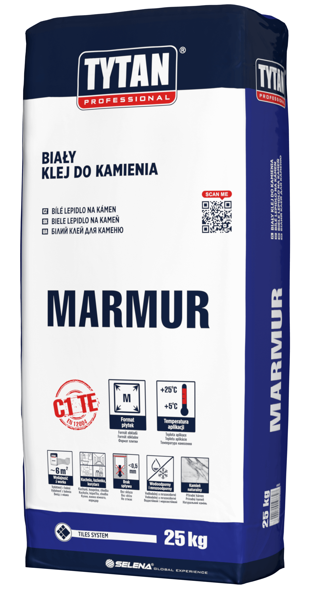 Klej MARMUR przeznaczony jest do przyklejania małych i średnich, ściennych i podłogowych okładzin z marmurów naturalnych i syntetycznych, kamieni naturalnych, płytek ceramicznych (glazury, terakoty, klinkieru, gresu), płytek lastrykowych i cementowych. Zalecany na standardowe, sztywne podłoża budowlane wewnątrz i na zewnątrz pomieszczeń. Klej MARMUR można stosować na powierzchnie w łazienkach, kuchniach, korytarzach budynków mieszkalnych.