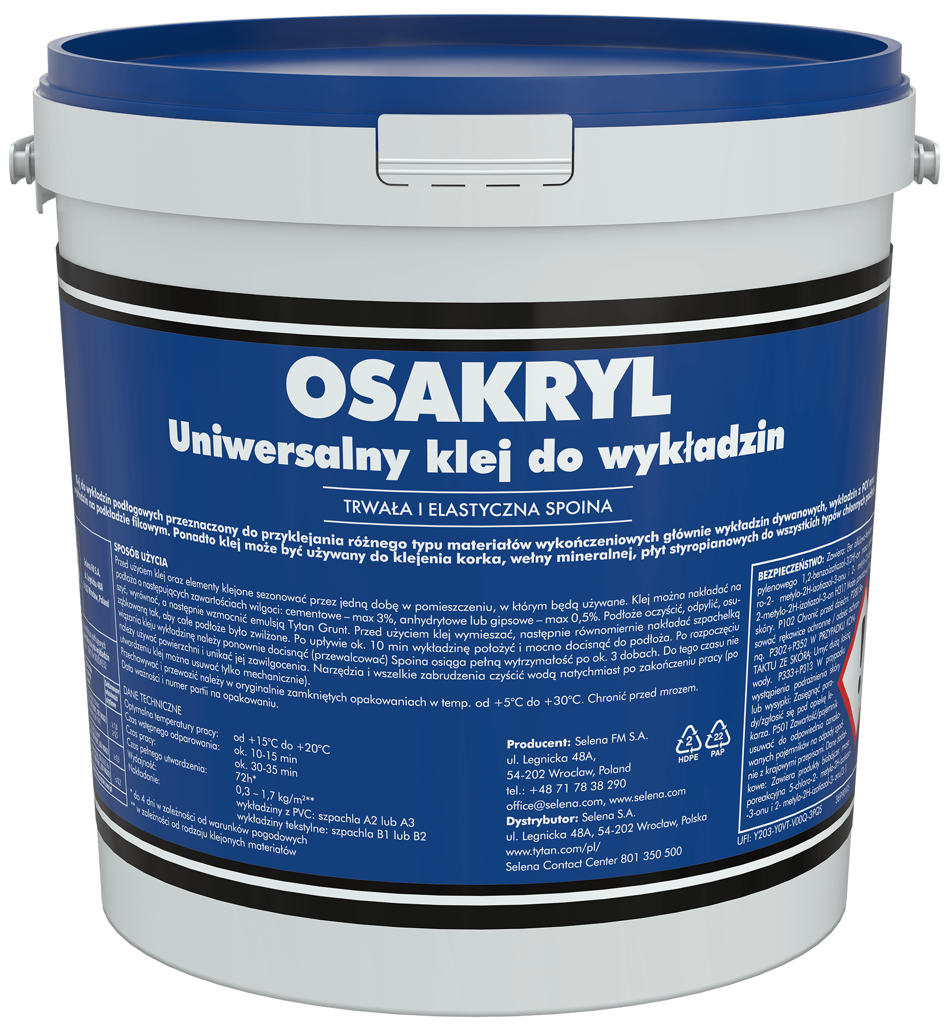 Jednoskładnikowy klej do przyklejania wykładzin podłogowych.
