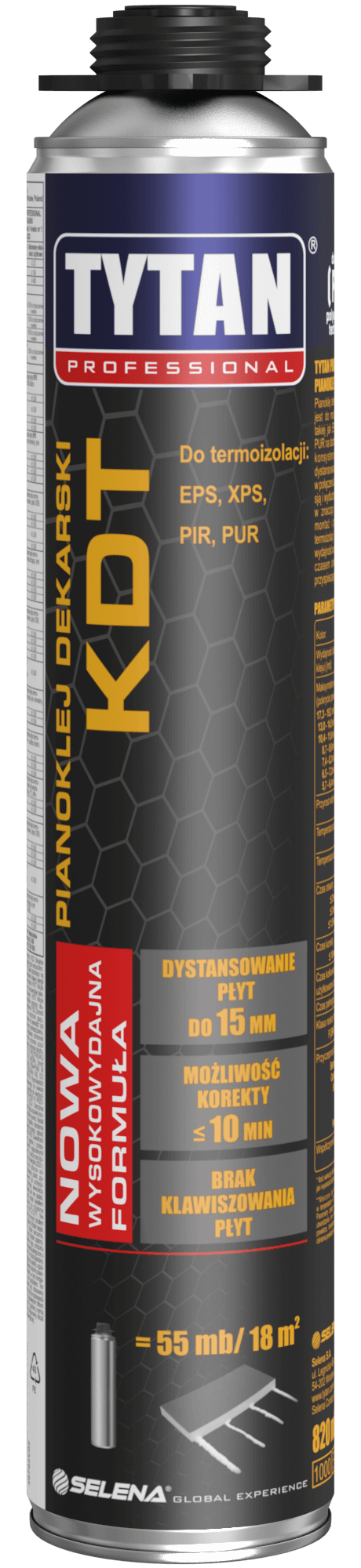 Pianoklej dekarski KDT przeznaczony jest do montażu termoizolacji wykonanej z EPS, XPS, PIR PUR oraz wełny mineralnej na dachach płaskich. Gęsta konsystencja umożliwiająca dystansowania płyt do 15 mm w połączeniu z niską post ekspansją i wydłużonym czasem korekty w znaczący sposób ułatwiają montaż i poziomowanie płyt termoizolacji. Natomiast wysoka wydajność w połączeniu z krótkim czasem otwartym pianokleju przyspieszają prace montażowe.