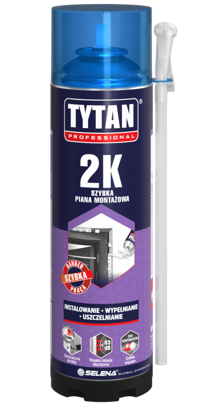 Tytan Professional 2K to piana utwardzająca się pod wpływem reakcji chemicznej między dwoma składnikami, charakteryzująca się jednorodną, drobnokomórkową strukturą. Rekomendowana do szerokiej gamy zastosowań w budownictwie: montowanie, uszczelnianie, wypełnianie, izolowanie. Jest odporna na pleśnie i grzyby oraz na działanie wysokich i niskich temperatur. Po utwardzeniu pianę można ciąć, piaskować, gipsować lub malować.