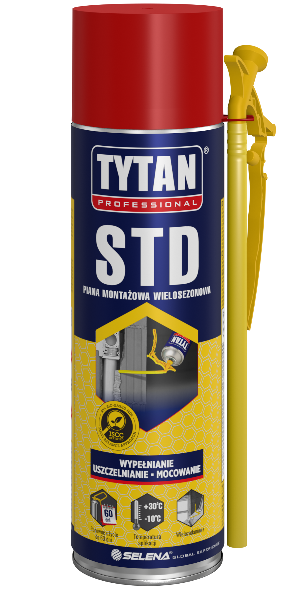 Tytan Professional STD to wielosezonowa uniwersalna piana poliuretanowa, która doskonale sprawdza się przy wszelkiego rodzaju pracach budowlanych. Dzięki łatwo kontrolowanej aplikacji doskonale nadaje się do wypełniania szczelin, przepustów, izolacji termicznej i akustycznej czy montażu okien i drzwi. Produkt z 30% zawartością MDI pochodzenia BIO w podejściu mass balance – co potwierdzone jest certyfikatem ISCC Plus. Dodany do piany nowoczesny aplikator daje możliwość ponownego użycia nawet do 60 dni po pierwszej aplikacji.