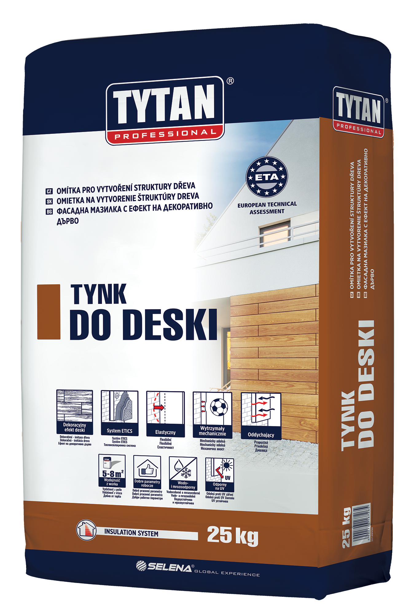 Tynk na bazie białego cementu, wypełniaczy mineralnych i kruszywa. Dedykowany pod efekty dekoracyjne, głównie imitujące strukturę naturalnego drewna. Stosowany na elewacjach w ramach systemów ociepleń, dodaje uroku i wyjątkowości. Specjalne dodatki powodują, że tynk jest bardzo plastyczny i łatwy w użyciu. Odznacza się bardzo dobrą przyczepnością do podłoża i odpornością na niekorzystne czynniki atmosferyczne, zwłaszcza wilgoć. Po pełnym utwardzeniu tworzy oddychającą i trwałą powłokę.