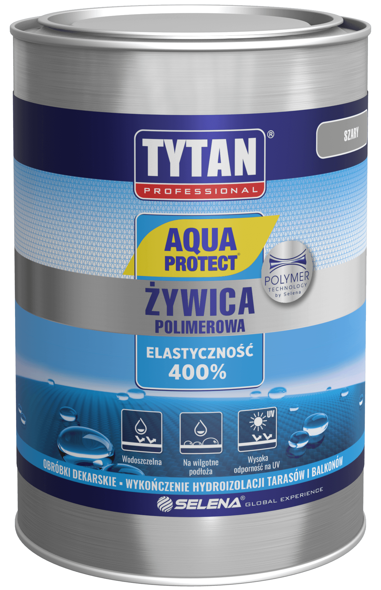 Aqua Protect Żywica polimerowa przeznaczona jest do uszczelniania rys i pęknięć, obróbek dekarskich na dachach oraz wykończeń hydroizolacji na tarasach i balkonach. Jest to gotowa do użycia, wodoodporna, elastyczna powłoka oparta na technologii MS Polimer. Jest produktem jednoskładnikowym, który utwardza się w kontakcie z wilgocią. Żywica polimerowa posiada wysokie parametry uszczelniające, w tym wysoką elastyczność, zapewniają wykonanie trwałych i samodzielnych obróbek uszczelniających, również na niestabilnych i pracujących podłożach. Wykazuje doskonałą przyczepność do typowych podłoży budowlanych, np. beton, cegła, drewno, metal (miedź, aluminium), ceramika, plastik, polistyren, twarde PVC i stal galwanizowana. Nie spływa z pionowych powierzchni. Żywica polimerowa jest wysoce odporna na UV oraz zmienne warunki atmosferyczne. Wykazuje podwyższoną odporność na mchy oraz grzyby.