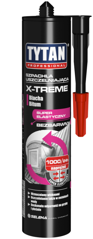 Bezbarwny uszczelniacz przeznaczony do natychmiastowej naprawy i uszczelnień dachów, rur, rynien, tarasów, kominów, itp. Dzięki wzmocnieniu elastycznymi włóknami polimerowymi wykazuje wyjątkową szczelność, przyczepność do podłoża oraz elastyczność. Szpachla uszczelniająca X-Treme szczególnie sprawdzi się w najcięższych warunkach tj. zastoinach wody, w czasie opadów deszczu i śniegu czy ujemnych temperaturach (do -10⁰C).