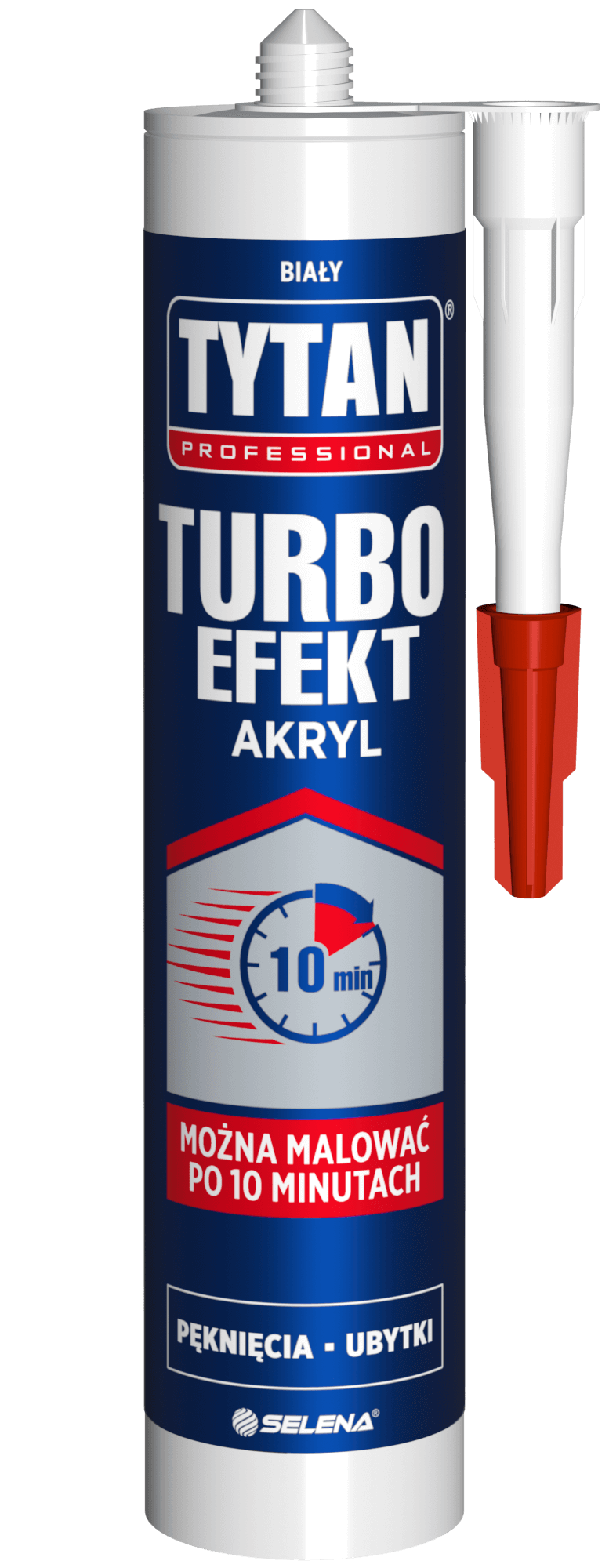 Akryl TURBO EFEKT jest plastyczno-elastycznym uszczelniaczem budowlanym, przeznaczonym do wypełniania pęknięć, rys i szczelin w ścianach i sufitach. Dzięki zastosowaniu innowacyjnej receptury Akryl TURBO EFEKT może być malowany już po 10 minutach od aplikacji. Jest bezwonny i neutralny chemicznie. Posiada doskonałą przyczepność do powierzchni porowatych, takich jak beton, tynk, cegła, drewno, płyta G-K.