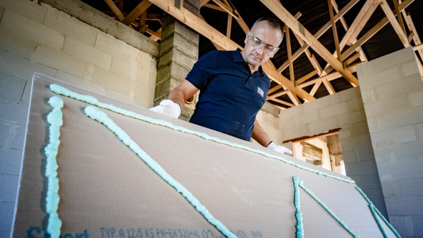 Adeziv poliuretanic profesional monocomponent dedicat fixării plăcilor de gips-carton, fibrociment, ciment și lemn (OSB) pe substraturi tipice de construcții. Permite o aplicare precisă și controlată.