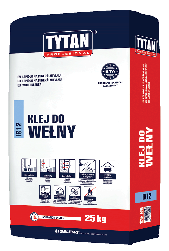 Cementové lepidlo určené na lepenie dosiek z minerálnej vlny (ako aj polystyrénových dosiek) v systémoch zatepľovania vonkajších stien.