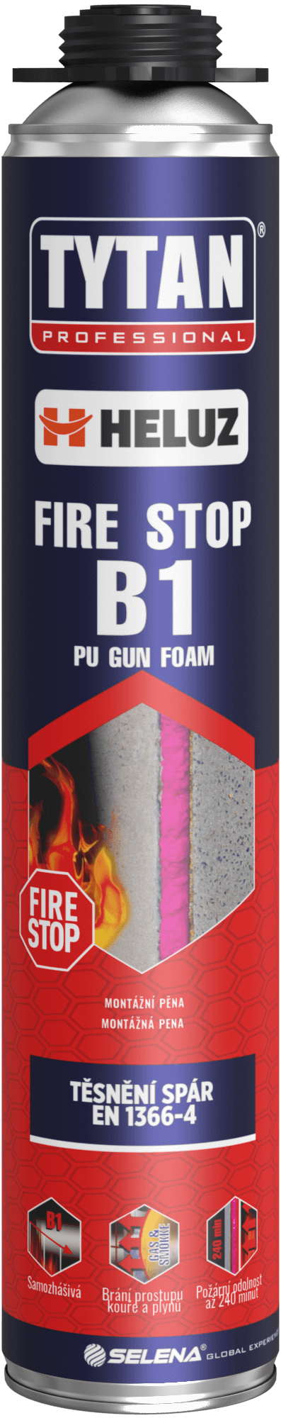 Montážna pena so zvýšenou odolnosťou voči požiaru a izolačnými vlastnosťami, vhodná na tesnenie a vypĺňanie pevných konštrukčných stien, lineárnych spojov a medzier. Pena vytvárajúcu reakciu s vlhkosťou vzduchu za vzniku plnohutnej štruktúry odolávajúcej vibráciám a pohybu spojov. Požiarna odolnosť: B1 (DIN 4102-1) pre trhliny so šírkou 30 mm medzi monolitickými, minerálnymi alebo kovovými stavebnými materiálmi. Pre pri tesnenie lineárnych škár do šírky 30 mm (EN 13501-2).