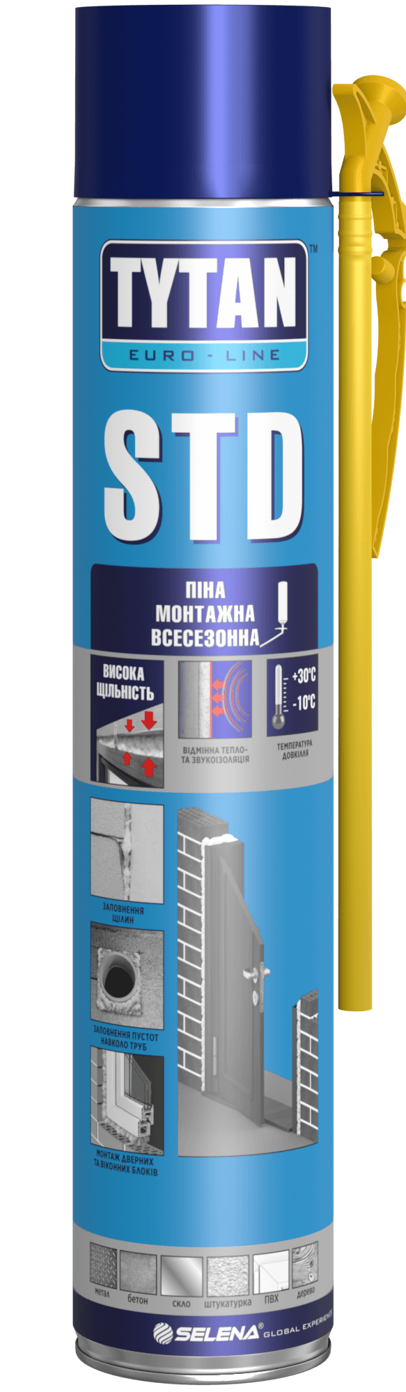 Всесезонна монтажна піна із зручною трубочкою-аплікатором для ручного застосування.
