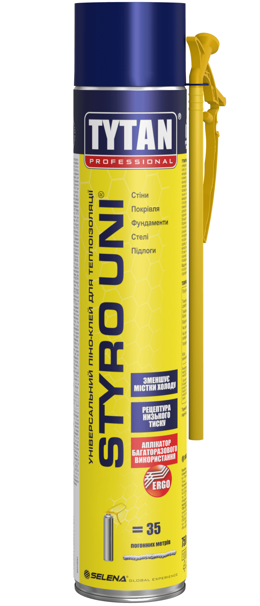 Універсальний поліуретановий піно-клей для кріплення ізоляційних матеріалів та декорацій.