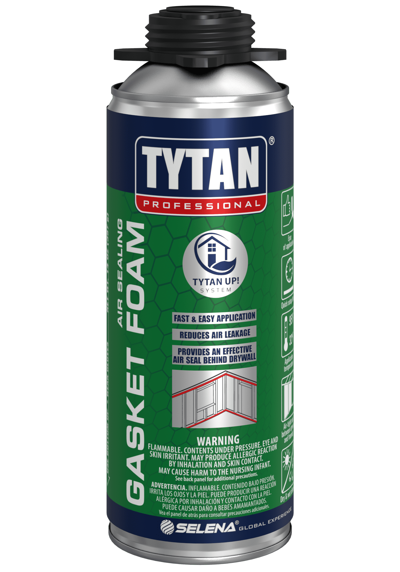 TYTAN Professional Gasket Foam creates an airtight seal between framing and drywall, while remaining flexible and strong. By eliminating air leaks at the top plate, it can improve a home’s air efficiency rating by up to 1.6 ACH, helping builders comply with strict energy requirements while reducing heating and cooling expenses. For a Job Well Done, use Tytan Professional Gasket Foam!